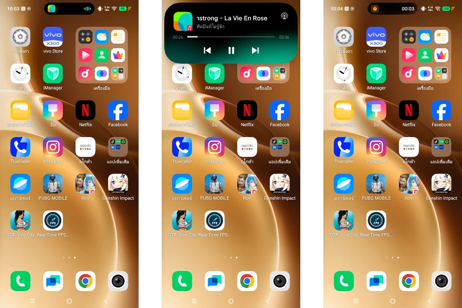มีฟีเจอร์ Origin Island จาก OriginOS 6 จะเป็นแถบหน้าต่างที่จะแสดงการกระทำที่มีในตอนนั้นเช่น การอัดเสียง, การฟังเพลง, การจับเวลา หรือการมาคัดลอกเนื้อหาและลากไปวางในพื้นที่ที่ต้องการได้
