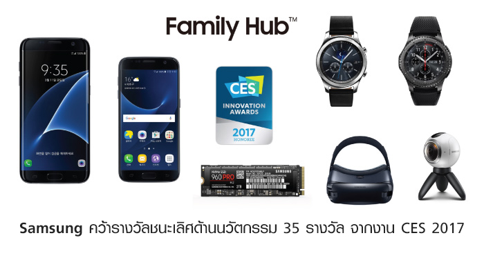 ซัมซุง ได้รับรางวัลชนะเลิศด้านนวัตกรรมรวม 35 รางวัลจากงาน CES 2017 โดยซัมซุงได้รับรางวัลด้านนวัตกรรมรวมทั้งสิ้น 350 รางวัล นับจากครั้งแรกที่ซัมซุงได้รับรางวัลนี้เมื่อ 11 ปีที่ผ่านมา ถือเป็นหลักฐานที่แสดงถึงความสำเร็จของซัมซุงในการพัฒนานวัตกรรมที่ล้ำสมัยอย่างต่อเนื่อง