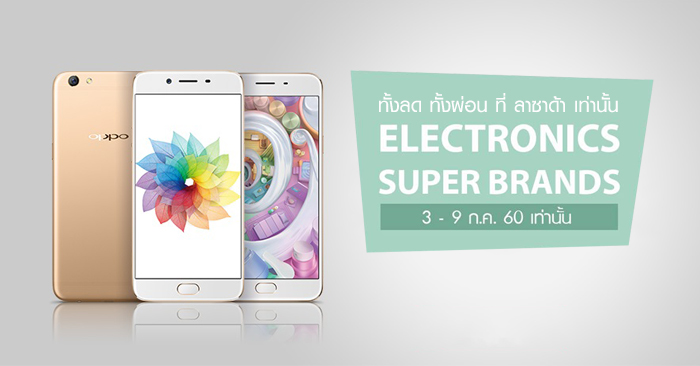 Oppo จัดโปรโมชั่นพิเศษร่วมกับทาง Lazada ในแคมเปญใหญ่ "Electronics Super Brands อิเล็กทรอนิกส์ แบรนด์ดัง ไม่ปัง ไม่เอามาลง" ลดราคาพิเศษมากถึง 50 % ไม่ว่าจะเป็นในส่วนของสมาร์ทโฟน หรืออุปกรณ์เสริมต่างๆ จากทาง Oppo โดยสามารถสั่งผ่าน Lazada Oppo Official ได้ทันทีตั้งแต่วันที่ 3 ก.ค. - 9 ก.ค. 2560 นี้