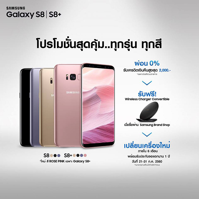 Samsung Galaxy S8+ สีใหม่ Rose Pink ซื้อวันนี้ รับฟรี! Wireless Charger ราคา 2,090.-