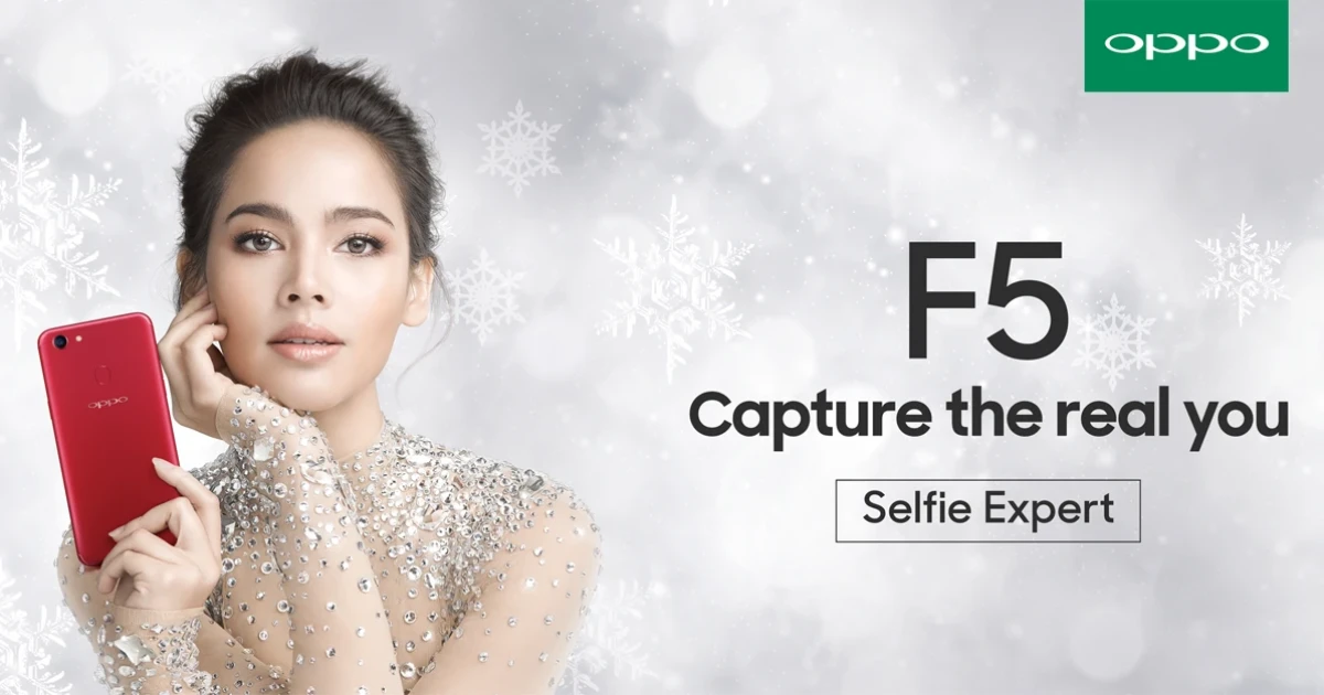 ออปโป้ ร่วมส่งท้ายปีกับคลิปไวรัลสุดอบอุ่นตัวล่าสุด ให้เทศกาลแห่งความสุข ชัดเจนในทุกความทรงจำ ภายใต้คอนเซ็ป "Sharing is the real happiness" โดยให้ OPPO F5 6GB สีแดงแทนสัญลักษณ์แห่งการแบ่งปัน พร้อมพรีเซนเตอร์คนล่าสุด ญาญ่า-อุรัสยา เสปอร์บันด์ หลังจากออปโป้ ได้เปิดตัว OPPO F5 Full Screen Series เมื่อเดือนต้นพฤศจิกายนที่ผ่านมา ภายใต้สโลแกน "Capture the real you" ประกอบไปด้วย 3 รุ่นด้วยกันคือ OPPO F5, OPPO F5 6GB และ OPPO F5 Youth ซึ่งมาในราคา 9,990 บาท 13,990 บาท และ 8,990 บาทตามลำดับ