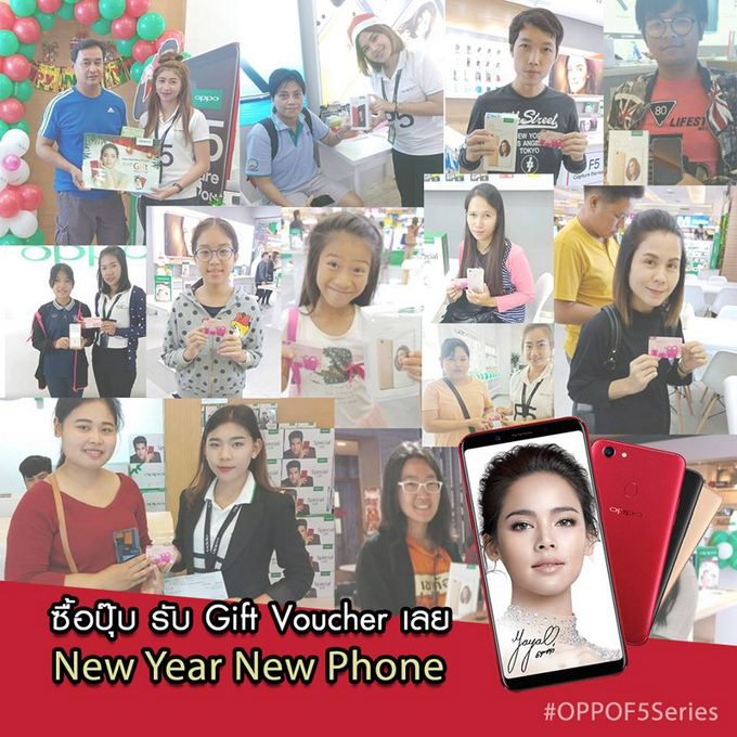 ใกล้สิ้นปีแบบนี้ สำหรับใครที่กำลังมองหาของขวัญสุดพิเศษหรือมีแพลนจะเปลี่ยนโทรศัพท์เครื่องใหม่ ออปโป้ ก็กลับมาอีกครั้งกับกิจกรรมดีๆ ให้คุณลูกค้าคนสำคัญทุกท่านกับ "OPPO New Year New Phone" ขอมอบบัตรของขวัญใช้แทนเงินสดมูลค่าสูงสุดกว่า 500 บาท ง่ายๆ เพียงซื้อสมาร์ทโฟนในรุ่น OPPO F5 Series ตั้งแต่วันที่ 23 ธันวาคม 2560 - 7 มกราคม 2561 ก็มีสิทธิ์จับบัตรของขวัญใช้แทนเงินสดกันไปเลย (เฉพาะร้านที่ร่วมรายการ)