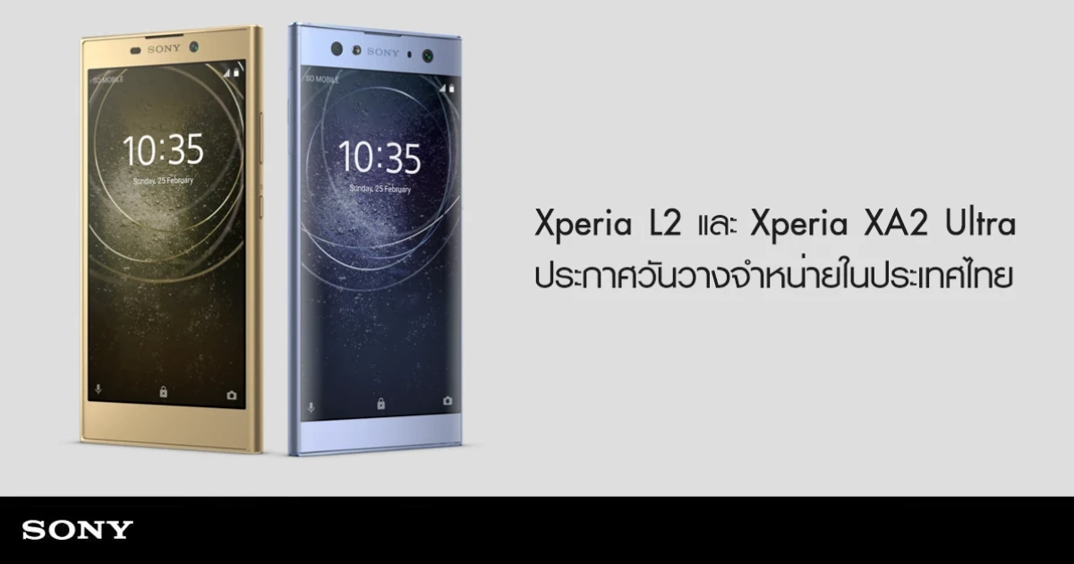 โซนี่ ประเทศไทย ประกาศวันวางจำหน่าย Sony Xperia XA2 Ultra และ Sony Xperia L2