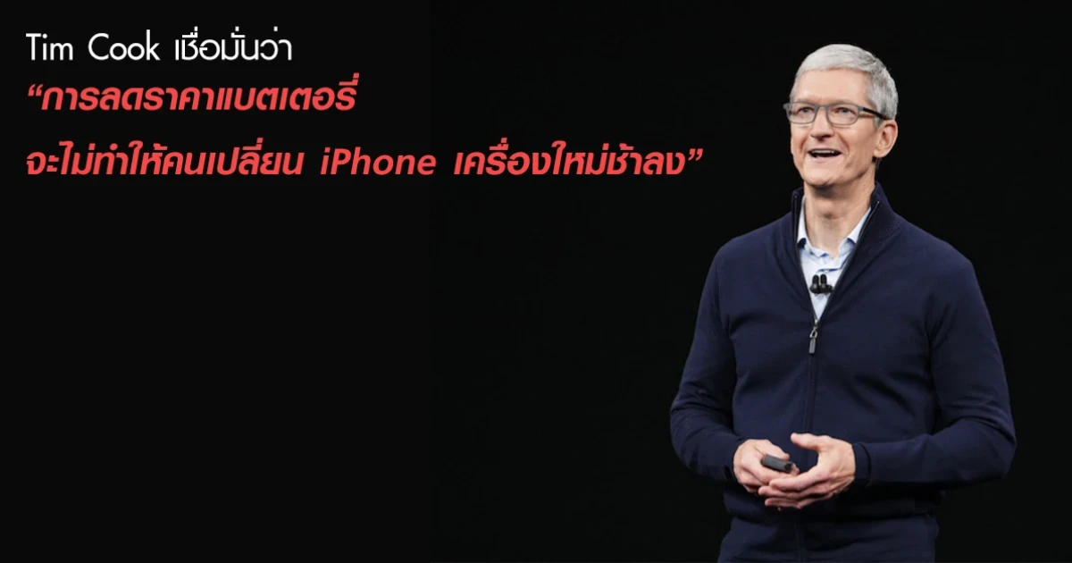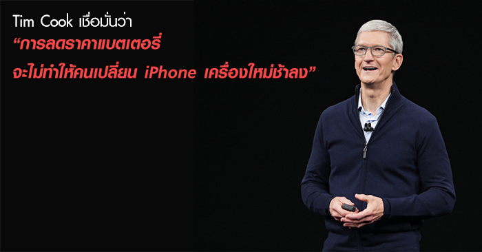 Tim Cook เชื่อมั่น นโยบายการลดราคาแบตเตอรี่ จะไม่ส่งผลกระทบให้คนเปลี่ยน iPhone เครื่องใหม่ช้าลง