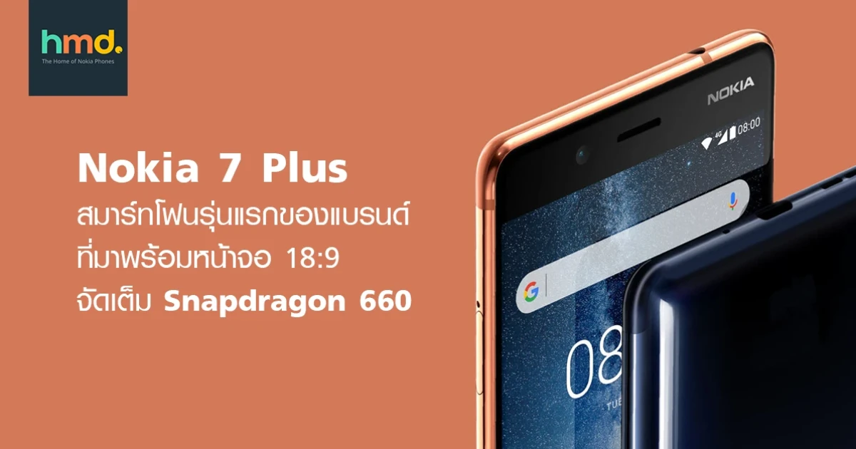 Nokia 7 Plus สมาร์ทโฟนรุ่นแรกของแบรนด์ที่มาพร้อมหน้าจอ 18:9 จัดเต็ม Snapdragon 660