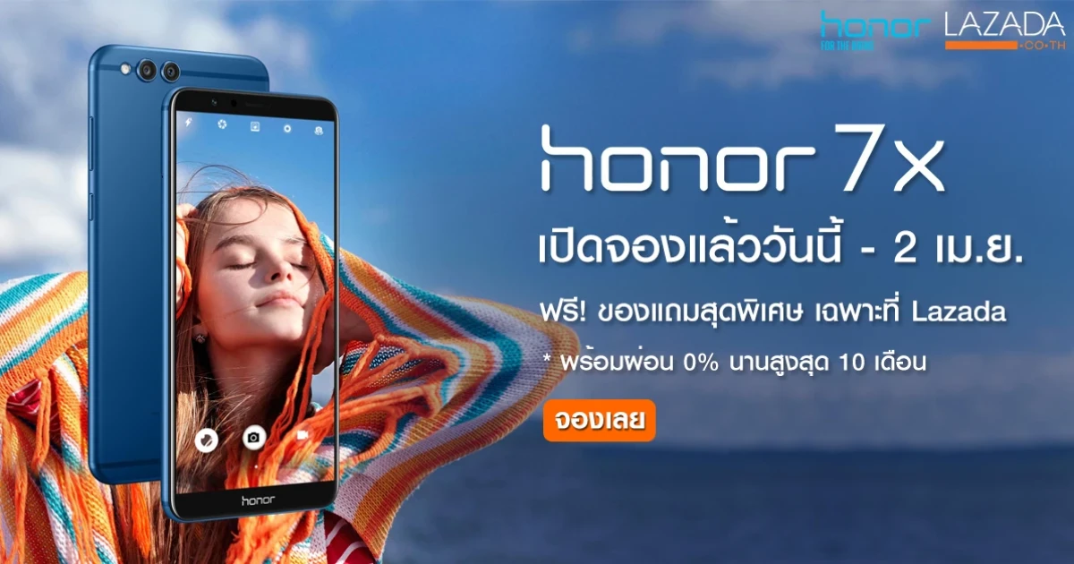 จอง Honor 7X กับ ลาซาด้า ฟรี! ของแถมสุดพิเศษ พร้อมผ่อน 0% นาน 10 เดือน วันนี้ - 2 เม.ย. 2561