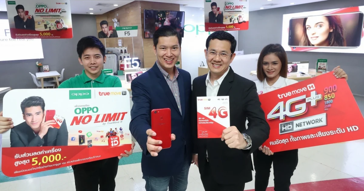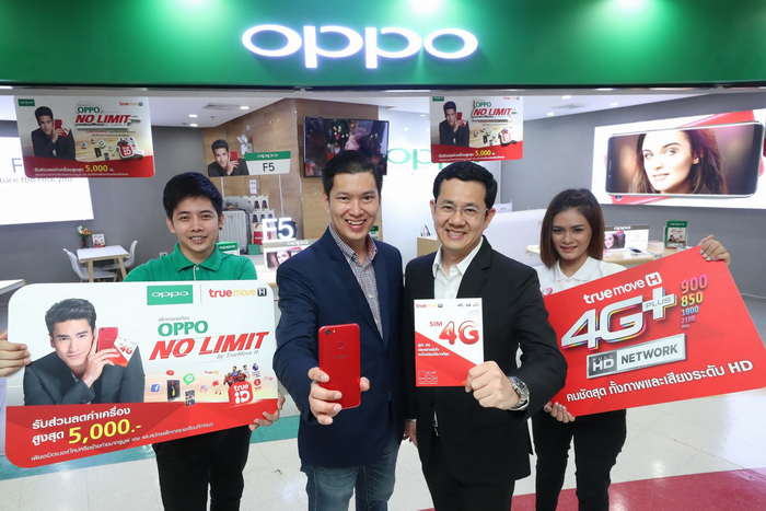 TrueMove H 4G HD Network เร็ว แรง ครอบคลุมทั่วประเทศ โดย นายทวนทอง ศรีวิเชียร ผู้อำนวยการ ด้านบริหารผลิตภัณฑ์ดีไวซ์ บมจ. ทรู คอร์ปอเรชั่น และ OPPO บริษัทสมาร์ทโฟนแอนดรอยด์ที่มียอดจำหน่ายเป็นอันดับ 2 ของประเทศไทย โดย นายชานนท์ จิรายุกุล รองกรรมการผู้จัดการบริหาร บริษัท ไทย ออปโป้ จำกัด ประกาศความร่วมมือขยายช่องทางการตลาดเพื่ออำนวยความสะดวกให้กับลูกค้า ให้ได้รับความคุ้มค่าสูงสุดและบริการครบวงจร พร้อมเดินหน้าขยายฐานลูกค้าสร้างความแข็งแกร่งในไทย ทรูมูฟ เอช ได้รับความไว้วางใจให้เป็นพันธมิตรจัดจำหน่ายซิมรายเดือน รวมถึงมีพนักงานให้บริการใน OPPO แบรนด์ช้อป เพื่อเพิ่มความสะดวกสบายให้กับลูกค้าภายในร้าน พร้อมมอบข้อเสนอสุดพิเศษส่วนลดค่าเครื่องสูงสุด 5,000 บาท และแพ็กเกจสุดคุ้มอย่าง OPPO NO LIMIT สำหรับลูกค้า OPPO โดยเฉพาะ เพื่อเป็นการฉลองความร่วมมือระหว่างทรูมูฟ เอช และ OPPO