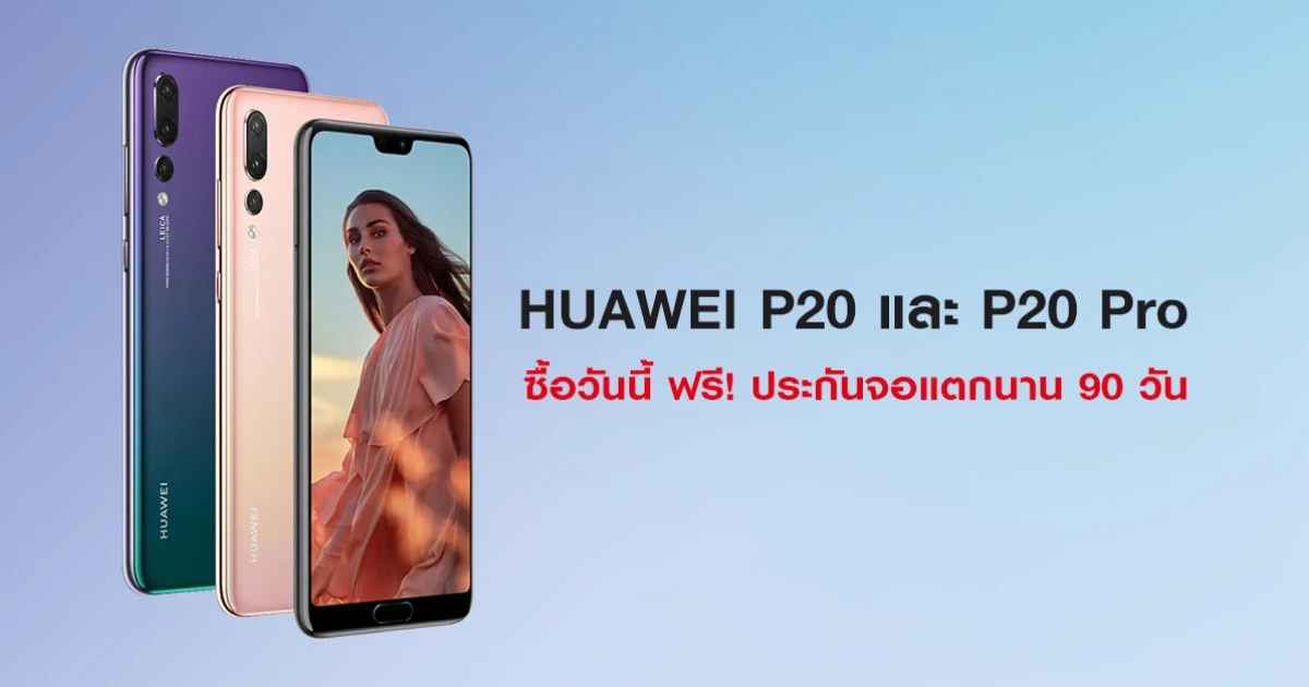 ห้ามพลาด! ซื้อ Huawei P20 และ Huawei P20 Pro วันนี้ ฟรี! ประกันจอแตกนาน 90 วัน