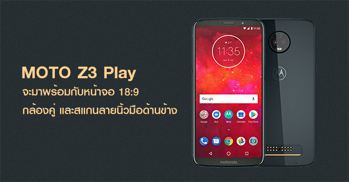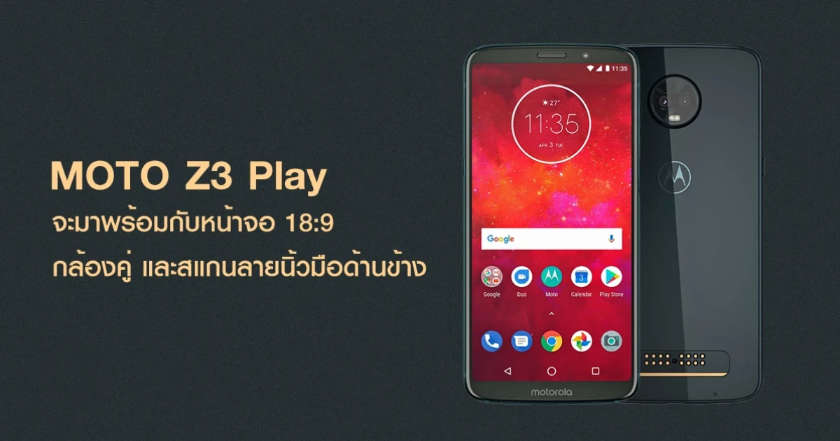เผยโฉม Moto Z3 Play มาพร้อมกับหน้าจอ 18:9 กล้องคู่ และสแกนลายนิ้วมือด้านข้าง