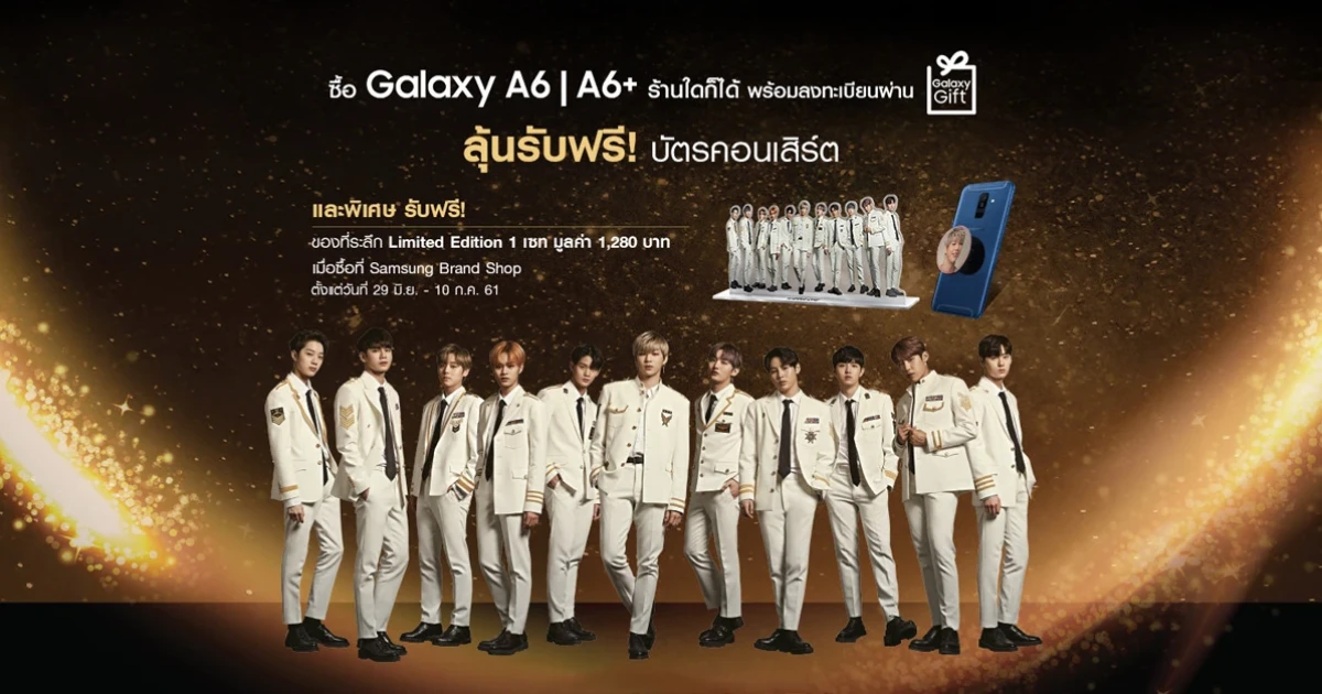 ซื้อ Samsung Galaxy A6 หรือ Galaxy A6+ วันนี้ - 10 ก.ค. 61 ลุ้นรับบัตรคอนเสิร์ต "Wanna One" ฟรี!