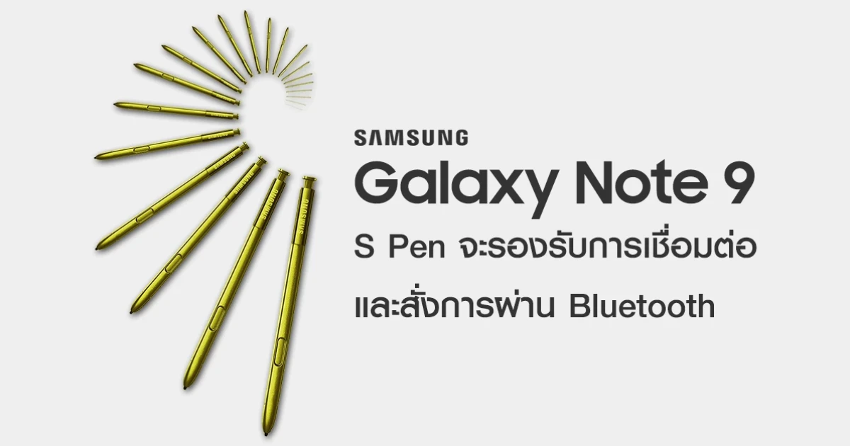 หลังจากเมื่อสัปดาห์ก่อนทาง ซัมซุง ได้ปล่อยภาพปากกา S Pen พร้อมหมายกำหนดการเปิดตัว Samsung Galaxy Note 9 อย่างเป็นทางการออกมาให้เห็นกันไปแล้ว (อ่านข่าวย้อนหลัง) แต่ดูเหมือนว่าภาพดังกล่าวอาจจะไม่ใช่แค่บ่งบอกว่าเป็นซีรีย์ Note เท่านั้น เพราะล่าสุดมีข้อมูลจากแหล่งข่าวในประเทศจีนระบุว่า Samsung จะทำการอัพเกรด S Pen ของ Note 9 ให้มาพร้อมความสามารถในการเชื่อมต่อ Bluetooth ได้ในตัวด้วย