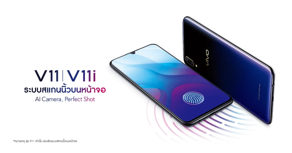 Vivo V11 และ Vivo V11i เปิดตัวอย่างเป็นทางการในประเทศไทยแล้วครับ สมาร์ทโฟนรุ่นใหม่ที่ยังคงได้นักร้องชื่อดัง "แบมแบม กันต์พิมุกต์ ภูวกุล แห่งวงบอยแบนด์ชื่อดัง GOT7" มาเป็นพรีเซนเตอร์เหมือนเดิม ทั้งสองรุ่นมีดีไซน์ที่สวยงามมากๆ มีการไล่เฉดสีและมีประกายแวววาวสวยงาม พร้อมติ่งหน้าจอแบบใหม่ที่เรียกว่า Halo FullView และตอกย้ำความเป็นผู้นำในการปฏิวัติรูปแบบสแกนนิ้วไปตลอดกาลด้วย In-Display Fingerprint Scanning สแกนลายนิ้วมือบนหน้าจอ เป็นครั้งแรกของสมาร์ทโฟนตระกูล Vivo V Series ที่สำคัญยังมาพร้อมระบบชาร์จเร็วที่ได้รับการอัพเกรดให้สมบูรณ์แบบมากยิ่งขึ้น Dual-Engine Fast Charging ซึ่งมาพร้อมระบบรักษาความปลอดภัยถึง 9 ขั้นตอนมาดูรายละเอียดของทั้ง 2 รุ่นนี้กันครับ