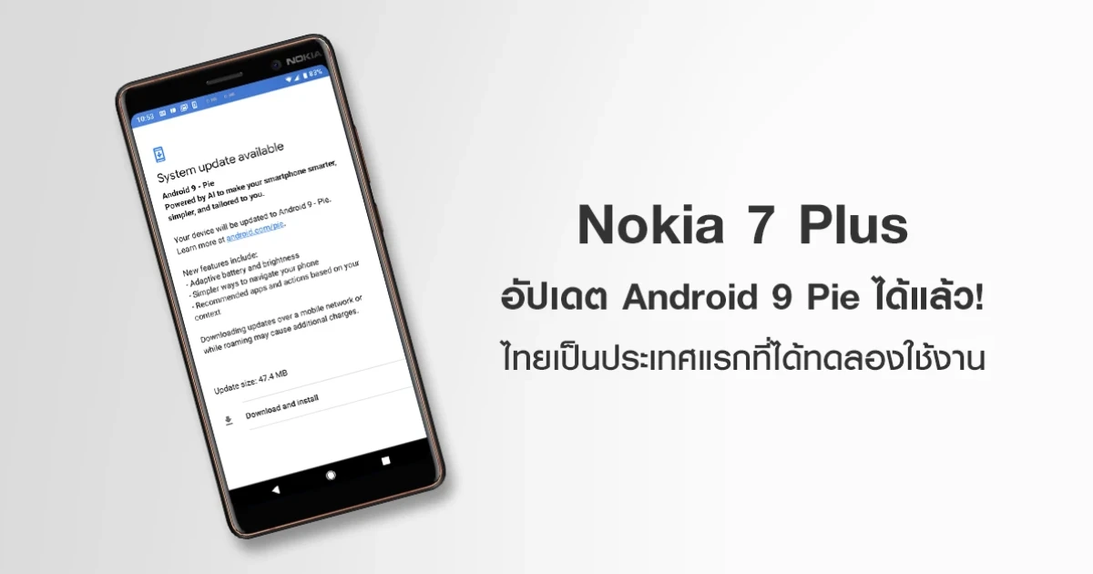 Nokia 7 Plus อัปเดต Android 9 Pie ได้แล้ว เครื่องศูนย์ไทยทดลองเป็นเจ้าแรก