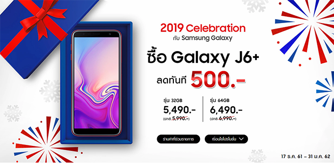 เอาใจสาวกตระกูล Samsung Galaxy J กับสมาร์ทโฟนจอใหญ่ สเปคเร็วแรง อย่าง Galaxy J6+ มาพร้อมเทคโนโลยีขั้นสูงและดีไซน์ระดับแฟลกชิป สุดคุ้มกับส่วนลด 500 บาท เหลือเพียง 5,490 บาท (32GB) และ 6,490 บาท (64GB)