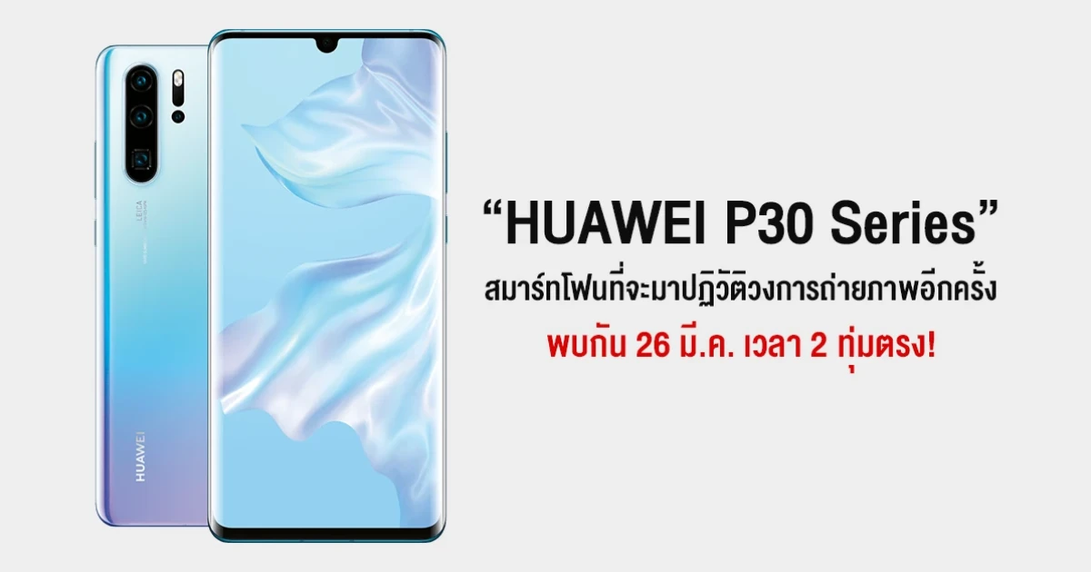 เตรียมพบกับ HUAWEI P30 Series สมาร์ทโฟนที่จะมาปฏิวัติวงการถ่ายภาพอีกครั้ง 26 มี.ค. เวลา 2 ทุ่ม!
