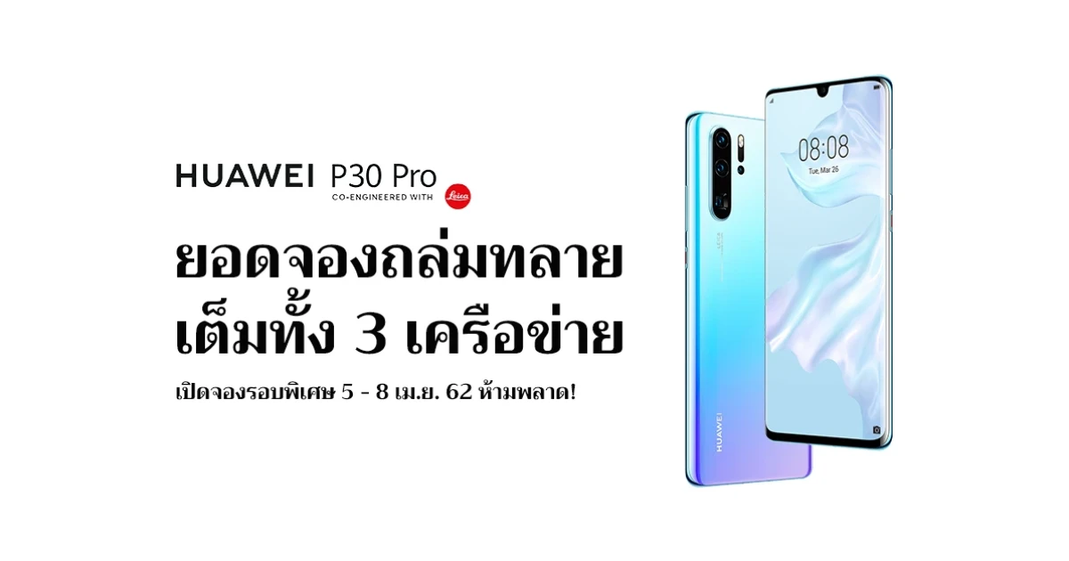 Huawei P30 Pro ยอดจองถล่มทลาย เต็มทั้ง 3 เครือข่าย พร้อมเปิดจองรอบพิเศษ 5 - 8 เม.ย. 62 ห้ามพลาด!