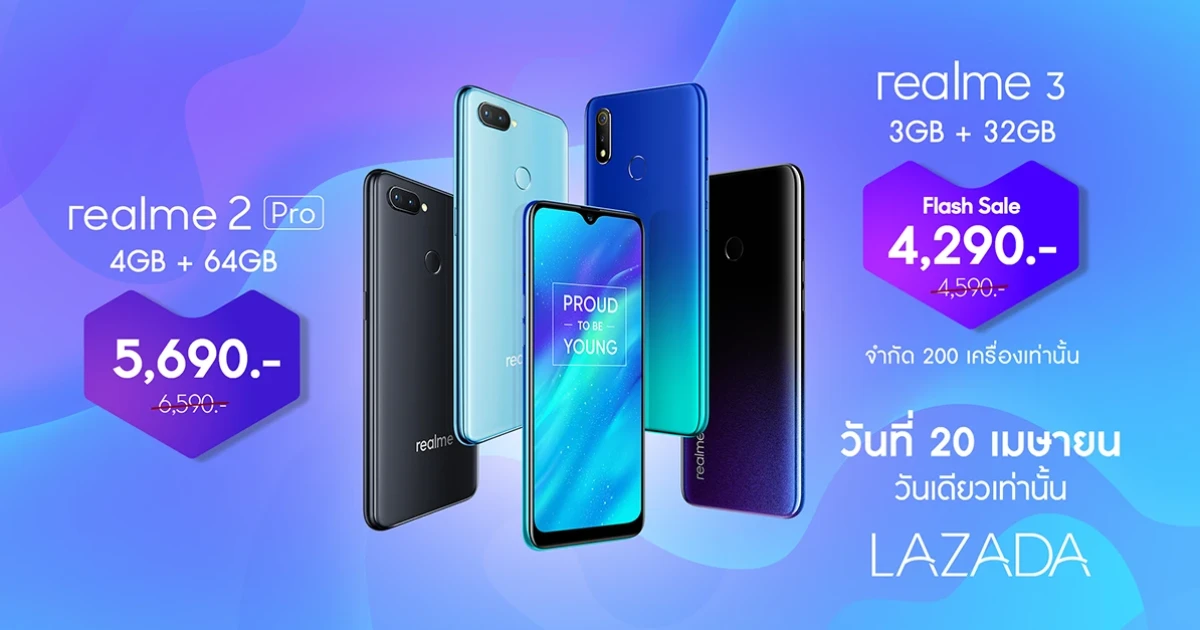 realme ลดราคาสมาร์ทโฟน realme 3 และ realme 2 Pro ผ่านลาซาด้า 20 เม.ย. วันเดียวเท่านั้น!