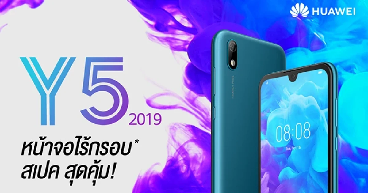 HUAWEI Y5 2019 สมาร์ทโฟนน้องเล็ก สเปคสุดคุ้ม จัดหนักจัดเต็มทั้งจอ กล้อง รวมถึงฟังก์ชั่นต่าง ๆ เพียบ ในราคาเพียง 3,799 บาท พร้อมจำหน่ายทั่วประเทศ ตั้งแต่วันที่ 14 มิถุนายน 2562 เป็นต้นไป ในราคาเพียง 3,799 บาท พร้อมรับของแถมสุดพิเศษ HUAWEI Gift Box มูลค่า 990 บาท