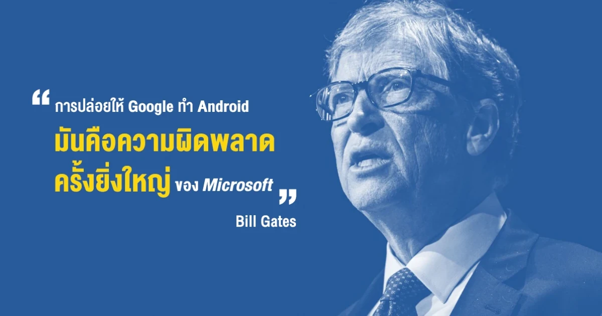 คนที่ประสบความสำเร็จมามากมายอย่าง Bill Gates หนึ่งในบุคคลทรงอิทธิพลแห่งวงการไอที ก็มีวันที่ผิดพลาดกับเขาเหมือนกัน แถมยังเป็นความผิดพลาดที่ทาง Bill Gates ถึงกับออกปากว่า ไม่น่าให้อภัยตัวเองเลยทีเดียว กับการที่เขาได้ปล่อยให้ Google ทำระบบปฏิบัติการ Android ขึ้นมา ทั้งทีตัวเขาเองก็เคยมีโอกาสที่จะทำก่อน