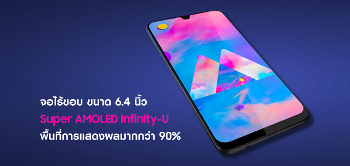 Samsung Galaxy M30 มาพร้อมหน้าจอแสดงผล Super AMOLED Infinity-U ขนาดใหญ่ถึง 6.4 นิ้ว เต็มอิ่มกับจอใหญ่สีสันสดใสคมชัด