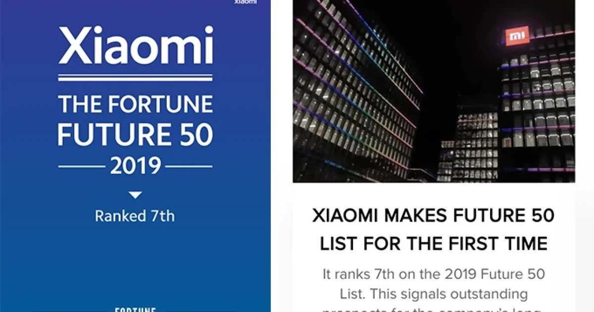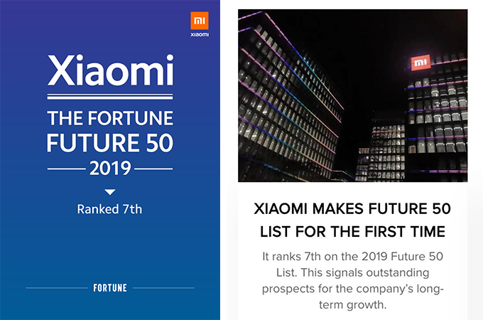 โดยการจัดอันดับ Future 50 หรือบริษัทดาวรุ่งแห่งอนาคต 50 บริษัท ที่มาแรงแห่งปีนั้น เป็นการจัดอันดับบริษัทชั้นแนว หน้าของโลก ที่มีการคาดการณ์ว่าจะประสบความสำเร็จด้านการเติบโตในระยะยาวเป็นอย่างมาก การได้รับการจัดอับดับอันทรงเกียรติให้เป็นหนึ่งในบริษัทดาวรุ่งแห่งปีจาก Future 50 นั้น ถือเป็นอีกหนึ่งความสำเร็จอีกขั้นของเสี่ยวมี่ ที่ตามมาหลังจากการได้รับการจัดอันดับบริษัทที่ทำรายได้สูงที่สุดในโลก 500 บริษัท ประจำปี 2019 ของ "Fortune Global 500"