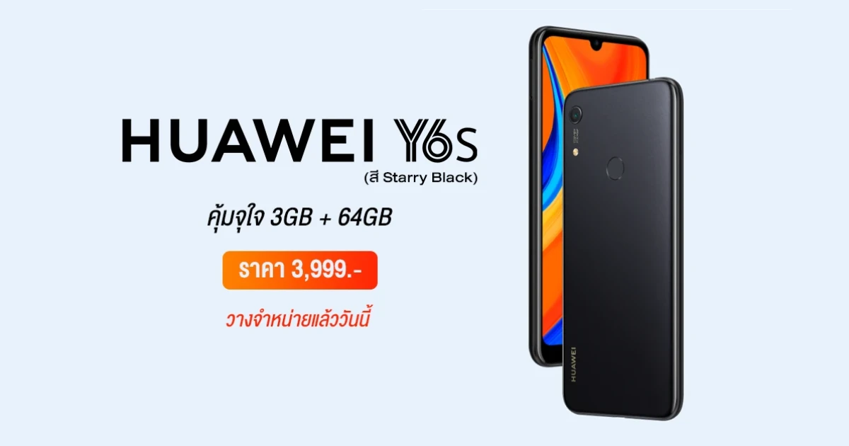 HUAWEI Y6s สมาร์ทโฟนสเปคคุ้มจุใจ สี Starry Black วางจำหน่ายแล้ว ในราคา 3,999 บาท