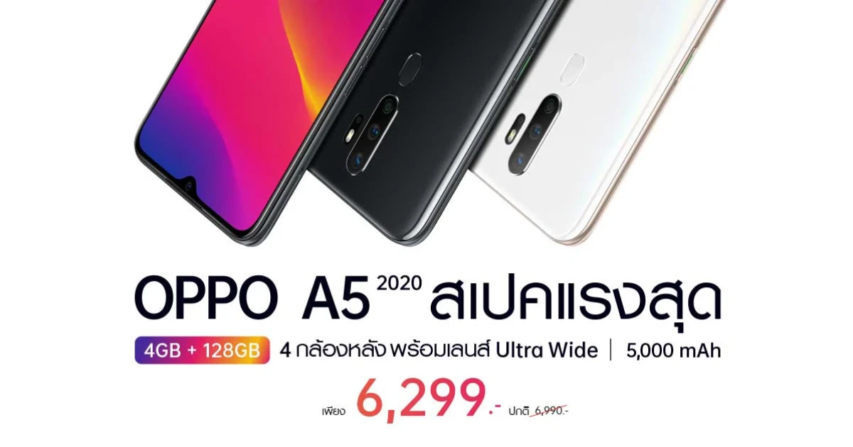 OPPO A5 2020 สมาร์ทโฟนรุ่น 4GB+128GB ราคาพิเศษต้อนรับปีใหม่ เพียง 6,299 บาท!