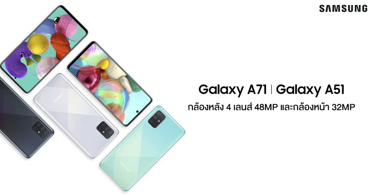 Samsung Galaxy A51 และ A71 สมาร์ทโฟนกล้องหลัง 4 เลนส์ 48MP และกล้องหน้า 32MP