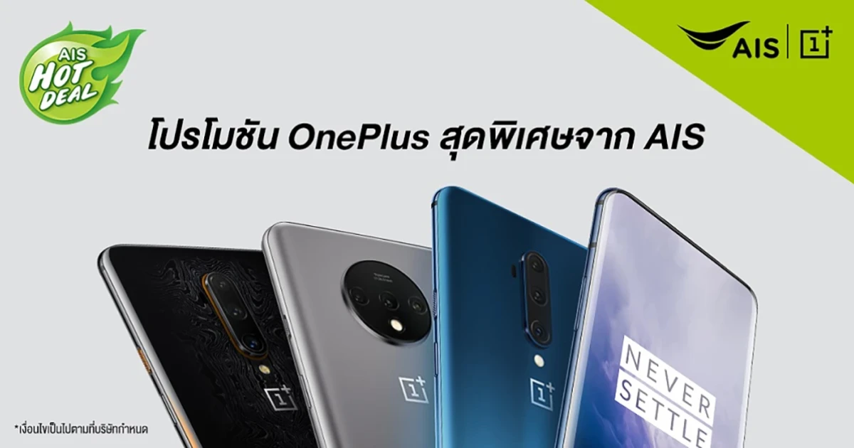 OnePlus แบรนด์สมาร์ทโฟน Super Flagship สุดพรีเมียม ที่ใส่ใจทุกรายละเอียด ทั้งดีไซน์การออกแบบ และนวัตกรรมใหม่ๆ รวมถึงประสบการณ์การใช้งานจริงผ่าน OnePlus Community ทั่วทุกมุมโลก พร้อมที่จะพัฒนาส่งมอบเทคโนโลยีที่ดีที่สุดให้กับผู้ใช้งานทุกท่าน ได้จับมือกับทาง AIS ผู้นำเครือข่ายอันดับ 1 ของไทย ส่งมอบเมนูโปรโมชันแพ็กเกจสุดคุ้ม! ให้คุณเป็นเจ้าของ OnePlus 7 Pro และ OnePlus 7T Series ได้ง่ายมากยิ่งขึ้นกับ AIS Hot Deal