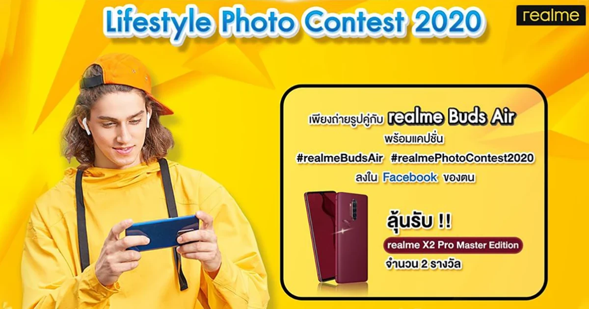 realme แบรนด์สมาร์ทโฟนเพื่อคนรุ่นใหม่จัดกิจกรรมสุดพิเศษเอาใจสาวก realme กับ realme Lifestyle Photo Contest 2020 กิจกรรมประกวดภาพถ่ายคู่กับหูฟัง "ตัวจริงการเชื่อต่อแบบไร้สาย realme Buds Air" ในคอนเซปต์ Lifestyle สะท้อนความเป็นตัวคุณผ่านหูฟังสุดพิเศษ realme Buds Air สำหรับภาพที่โดนใจคณะกรรมการมากที่สุดรับฟรี สมาร์ทโฟนพลังเรือธงสุดพิเศษ realme X2 Pro Master Edition สี Red Brick มูลค่า 19,999 บาท สามารถร่วมกิจกรรมได้แล้วตั้งแต่วันนี้ - 9 กุมภาพันธ์ 2563