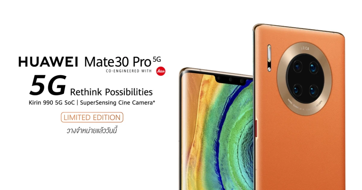 Huawei Mate 30 Pro 5G สัมผัสประสบการณ์ 5G ก่อนใครได้แล้ววันนี้ ในราคาเริ่มต้นที่ 17,990 บาท!