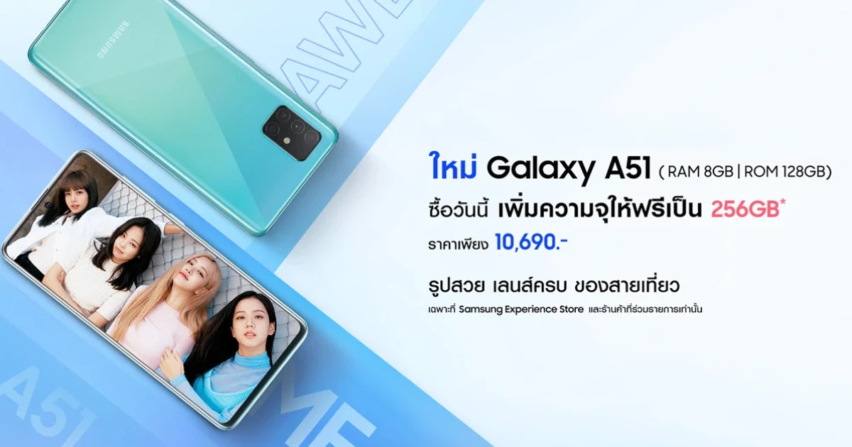 ซื้อสมาร์ทโฟน Samsung Galaxy A51 วันนี้ เพิ่มความจุให้ฟรี! 256GB ในราคา 10,690 บาท