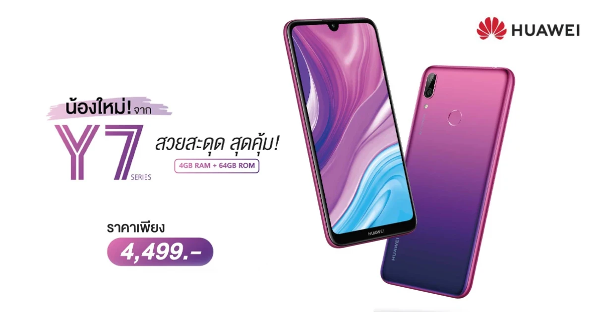 หัวเว่ย เปิดตัวสมาชิกใหม่ในกลุ่มสมาร์ทโฟนซีรี่ส์ Y สุดฮิต HUAWEI Y7 สวยสะดุด สุดคุ้ม! มาดีไซน์เรียบหรู ตอบโจทย์ทุกฟังก์ชันการใช้งานทั้งถ่ายรูปและการทำงานแบบ On the Go ในราคาเพียง 4,499 บาท พร้อมวางจำหน่ายตั้งแต่วันนี้เป็นต้นไป
