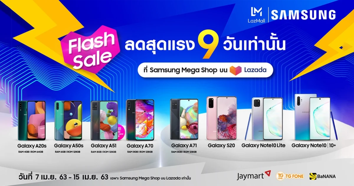 Samsung ร่วมกับ Lazada Flash Sale จัดโปรแรงสมาร์ทโฟน ลดหนักสุด วันนี้ - 15 เมษายน 63 เท่านั้น!