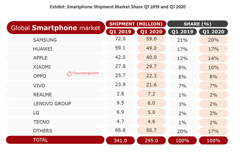 ที่มา : Counterpoint Research: Quarterly Market Monitor Q1/2020