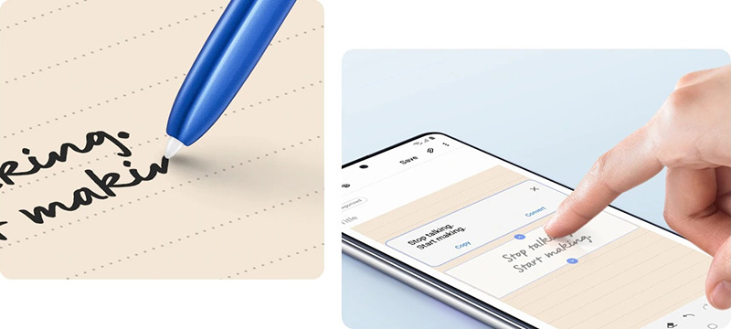 รวมถึงฟีเจอร์เพื่อความ Productivity อื่นๆ เช่น ปากกาอัจฉริยะ การใช้ปากกาจะช่วยปลดล็อกความคิดสร้างสรรค์และเพิ่มประสิทธิภาพในการทำงานในหลายๆ ด้านได้อย่างเหลือเชื่อ เพราะเราสามารถดึงออกมาขีดเขียน สเก๊ตช์ภาพ หรือจดโน้ตแบบรีบๆ ได้ทุกที่ ยิ่งถ้ามีฟังก์ชั่นเปลี่ยนลายมือที่จดไว้ให้เป็นตัวพิมพ์เพื่อนำไปใช้งานในรูปแบบอื่นๆ ต่อได้ก็จะยิ่งเวิร์กไปอีกขั้น ซึ่งหลายคนอาจคิดว่าต้องเป็นสมาร์ทโฟนรุ่นแฟลกชิปเท่านั้นถึงจะทำได้ แต่จริงๆ แล้ว ในปัจจุบันก็มีสมาร์ทโฟนระดับกลางที่มาพร้อมปากกาอัจฉริยะแล้วเช่นกัน