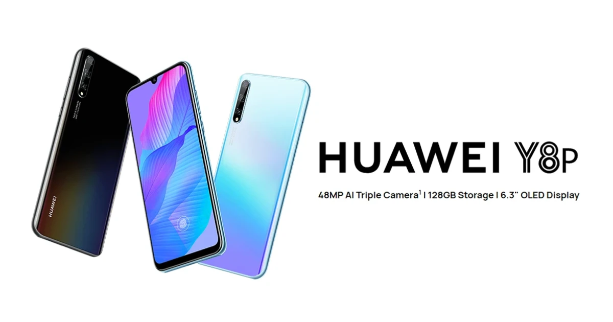 Huawei Y8p มาพร้อมดีไซน์ที่สวยงาม หน้าจอ OLED ขนาด 6.3 นิ้ว ความละเอียด Full HD+ 1080 x 2400 pixels (418 ppi) อัตราส่วน 20:9, ทำงานบน Android 10 ครอบทับด้วย EMUI 10, Kirin 710F, GPU Mali-G51 MP4, RAM 6GB, ROM128GB รองรับ Nano Memory, Wi-Fi 802.11 a/b/g/n/ac, Bluetooth 5.0, GPS, NFC, USB Type-C 2.0, Fingerprint (under display, optical), accelerometer, proximity, compass, แบตเตอรี่ความจุ 4,000 mAh รองรับการชาร์จ 10W, กล้องหน้าทรงหยดน้ำ ความละเอียด 16MP F2.0, กล้องหลัง 3 เลนส์ ความละเอียด