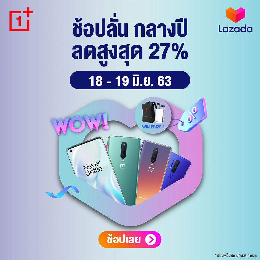 OnePlus แบรนด์สมาร์ทโฟนสุดพรีเมียม ที่ได้เปิดตัวสมาร์ทโฟนแฟล็กชิปรุ่นใหม่ล่าสุดในเดือนพฤษภาคมที่ผ่านมาด้วยกัน 2 รุ่น คือ OnePlus 8 และ OnePlus 8 Pro ที่มาในคอนเซ็ปต์ Lead with Speed เร็วแรง ทรงพลัง ในดีไซน์ที่สวยงาม โดยในครั้งนี้ทาง OnePlus ได้ขนทัพของแถมสุดคุ้ม มอบดีลสุดพิเศษบนช่องทางออนไลน์ JD Central และ LAZADA สำหรับผู้สั่งซื้อสมาร์ทโฟนเรือธง OnePlus 8 Series ที่มาพร้อมเทคโนโลยีสุดล้ำ ด้วยหน้าจอที่สวยที่สุดกับค่า Refresh Rate สูงสุดถึง 120 Hz พร้อมทั้งลุ้นรับของแถมสุดพรีเมียม และโปรโมชั่นกลางปีสุดพิเศษครั้งใหญ่ ในวันที่ 13 - 21 มิ.ย. 63 นี้
