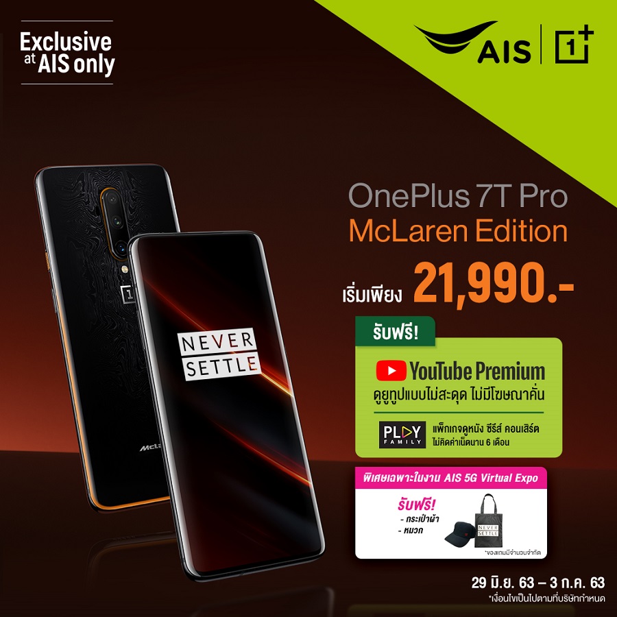- OnePlus 7T Pro McLaren Edition เริ่มต้นเพียง 21,990 บาท
