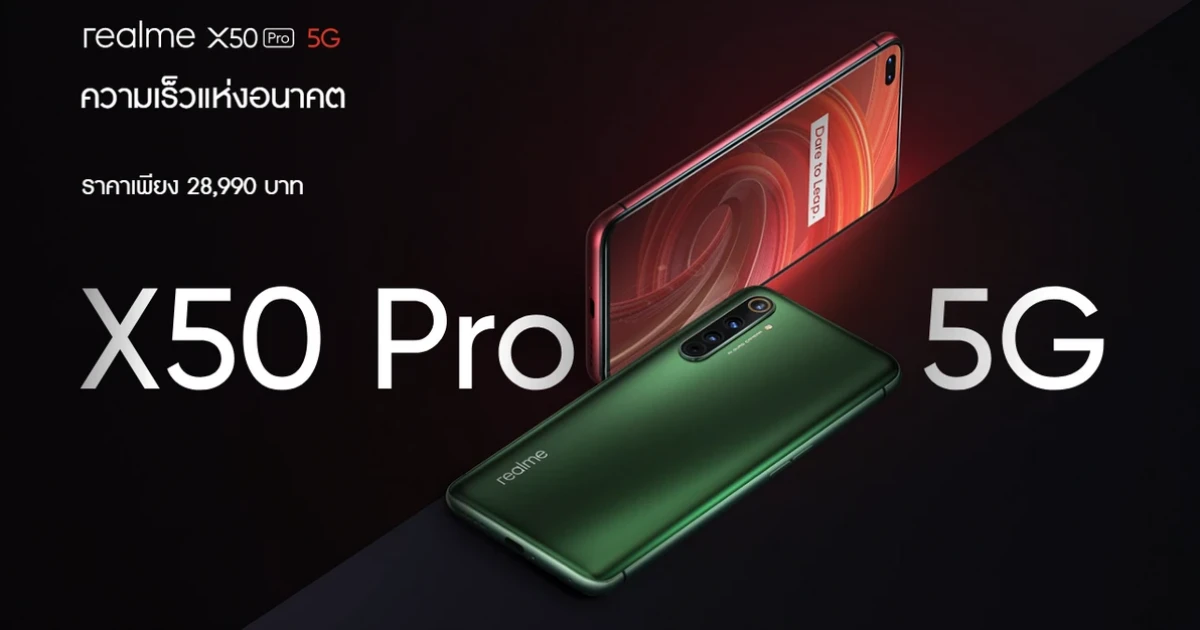 realme X50 Pro 5G สมาร์ทโฟนรุ่นใหม่ล่าสุดจากแบรนด์ realme เป็นน้องใหม่ ที่มาแรงเติบโตเร็วที่สุดเท่าที่เคยมีมา สำหรับรุ่นนี้จะเป็นสมาร์ทโฟนเรือธงสูงสุดของแบรนด์เลยครับ รองรับ 5G หน้าจอ Super AMOLED รองรับมาตรฐาน HDR10+ และ DCI-P3 ความสว่างสูงสุด 1000 nits รองรับ Refresh Rate 90Hz และ Sampling Rate 180Hz ชิปเซ็ตสุดแรง Snapdragon 865 กล้องหน้าคู่ 32MP และกล้องหลัง 4 เลนส์ 64MP RAM 12GB/ROM 256GB แบตเตอรี่ความจุ 4,200 mAh รองรับชาร์จเร็ว SuperDart Flash Charge 65W เรามาดูรายละเอียดสมาร์ทโฟนรุ่นนี้กันครับ ว่าจะน่าสนใจขนาดไหน
