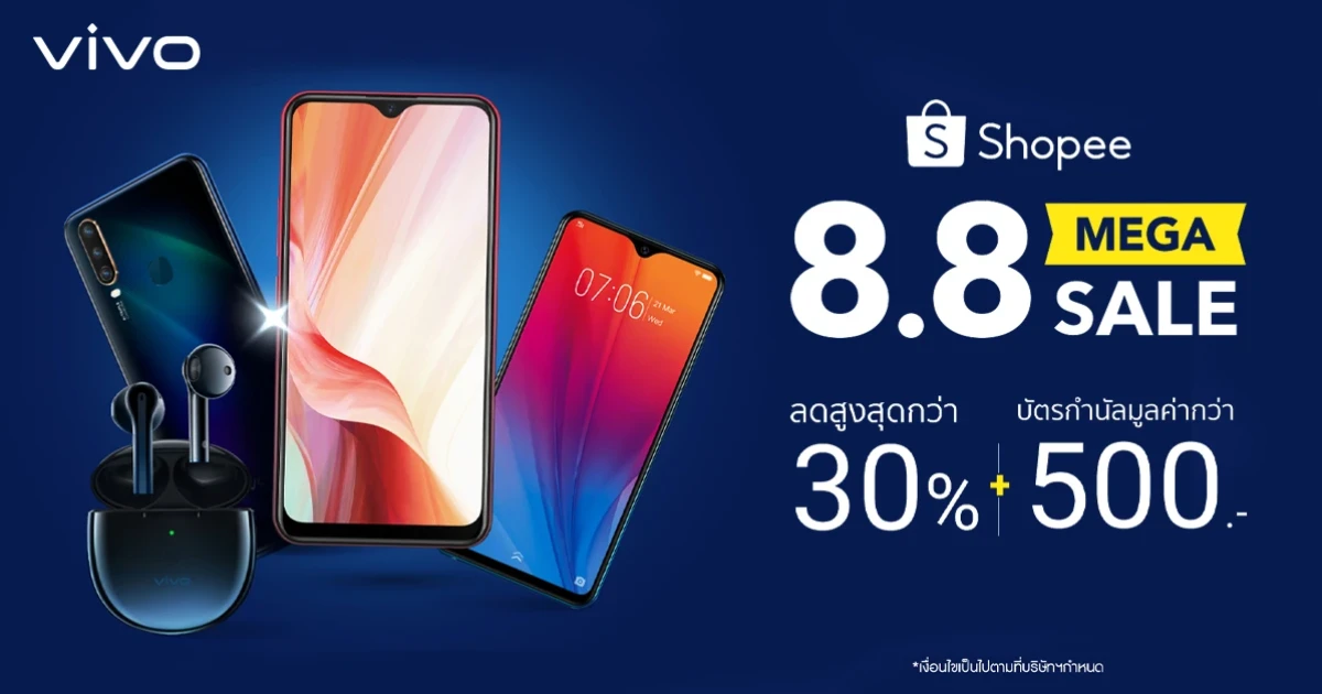 Shopee x Vivo Thailand Official Store 8.8 ซื้อคู่สุดคุ้ม แฮปปี้คูณสอง! ลดสูงสุดถึง 30% พร้อมของแถมอีกเพียบ