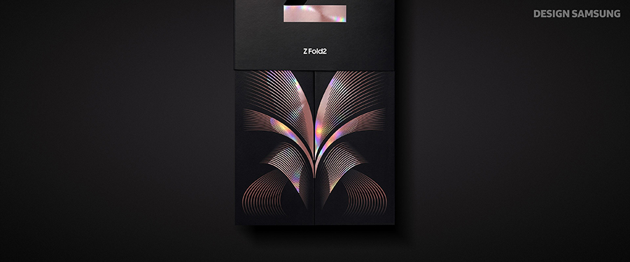 อีกหนึ่งรายละเอียดที่ซัมซุงตั้งใจออกแบบเพื่อสร้างความประทับใจตั้งแต่แรกสัมผัส คือดีไซน์ของแพคเกจจิ้งด้านนอก โดยซัมซุงได้แฝงลูกเล่นที่ถ่ายทอดอัตลักษณ์ของ Galaxy Z Fold2 5G ไว้อย่างแยบยล ไม่ว่าจะเป็น ทิศทางการเปิดกล่องออกตามแนวด้านข้างเช่นเดียวกับลักษณะการกางเครื่อง หรือลวดลายกราฟฟิกบนกล่องที่คล้ายคลึงกับภาพ Lock Screen รวมถึงการจัดวาง Layout ของแผ่นพับคู่มือที่แบ่งออกเป็น 2 คอลัมน์แนวตั้ง เพื่อให้สอดคล้องกับหน้าจอของ Galaxy Z Fold2 5G