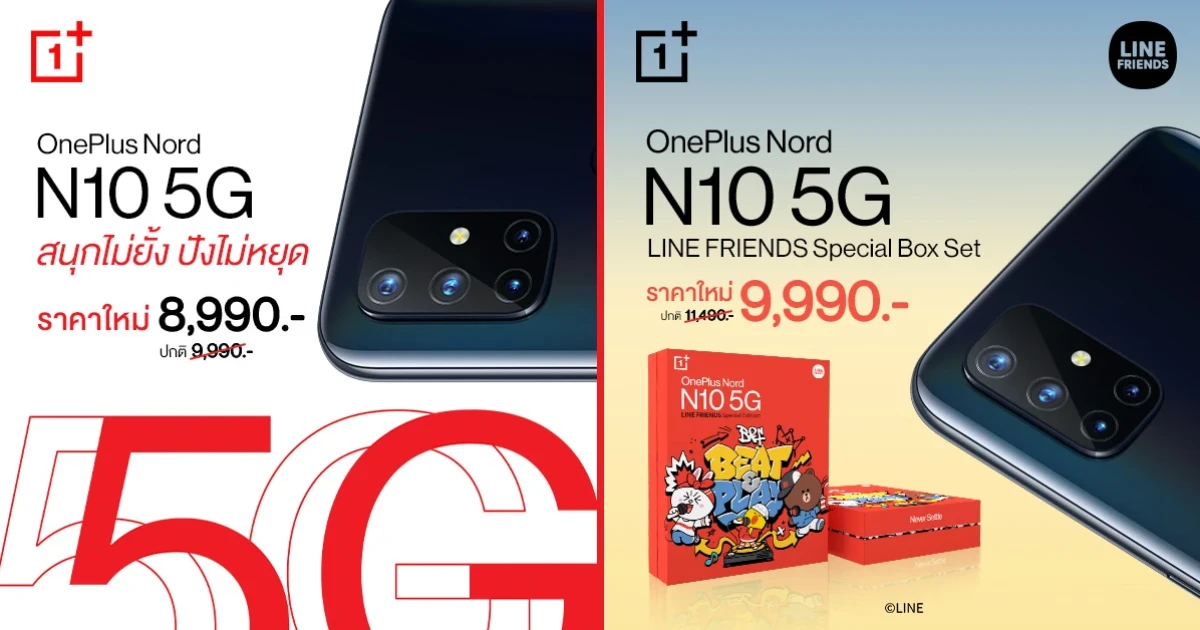 ต้อนรับเดือนมีนาคม OnePlus จัดโปรโมชันเซอร์ไพรซ์สุดพิเศษ คุ้มยิ่งกว่าเดิม! กับการปรับลดราคาทั้ง OnePlus Nord N10 5G เหลือเพียง 8,990 บาท และ OnePlus Nord N10 5G LINE FRIENDS Special Box Set เหลือเพียง 9,990 บาทเท่านั้น