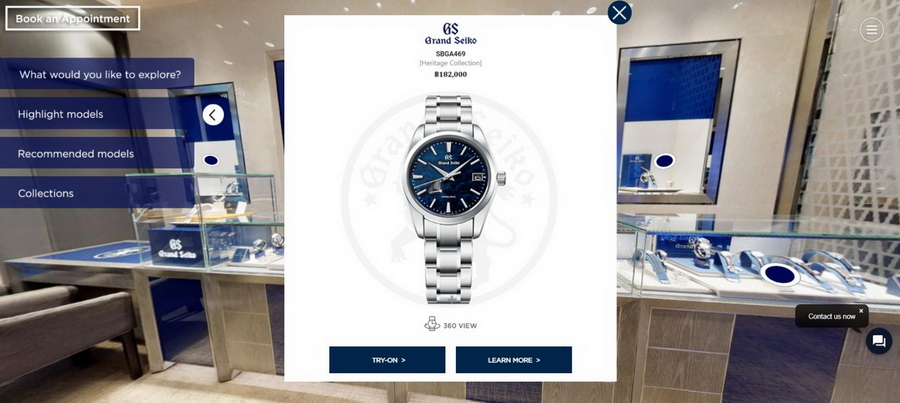 และนอกจากการเปิดตัว The first Grand Seiko Boutique Online Exclusive Edition แล้ว ทาง Grand Seiko ยังได้แนะนำฟีเจอร์ใหม่ล่าสุดบน Virtual Boutique บูติกเสมือนจริงแห่งแรกของแบรนด์ นั่นคือ ฟีเจอร์ Book an appointment ระบบการจองนัดหมายวันเพื่อให้ผู้เชี่ยวชาญจาก แกรนด์ ไซโก นำคอลเลคชั่นนาฬิกาสุดหรูไปให้ชมได้ทุกที่ในประเทศไทย หรือนัดหมายเข้าชมนาฬิการุ่นใหม่และรุ่นลิมิเต็ดอิดชั่นก่อนใครที่ร้านบูติกที่ใกล้ที่สุด อีกทั้งระบบได้มีการนำ Google Map Platform มาช่วยค้นหาและแสดงตำแหน่งที่อยู่บนแผนที่ โดยเมื่อพิมพ์ค้นหา ระบบจะแสดงที่อยู่ทั้งหมดโดยอัตโนมัติ ช่วยให้กรอกข้อมูลง่าย และถูกต้องยิ่งขึ้น ต่อด้วยฟีเจอร์ Try On สัมผัสนาฬิกา Grand Seiko ทุกเรือนในแบบเสมือนจริงทุกคอลเลคชั่น และสุดท้าย 360 Virtual View ที่สามารถค้นหาภาพพาโนรามาของคอลเลคชั่น ใหม่ล่าสุดที่มีรายละเอียดของนาฬิกา เช่น แสงและเงา พื้นผิวบนหน้าปัด ความหนาของนาฬิกา และความยาวและขนาด ของสาย เป็นต้น