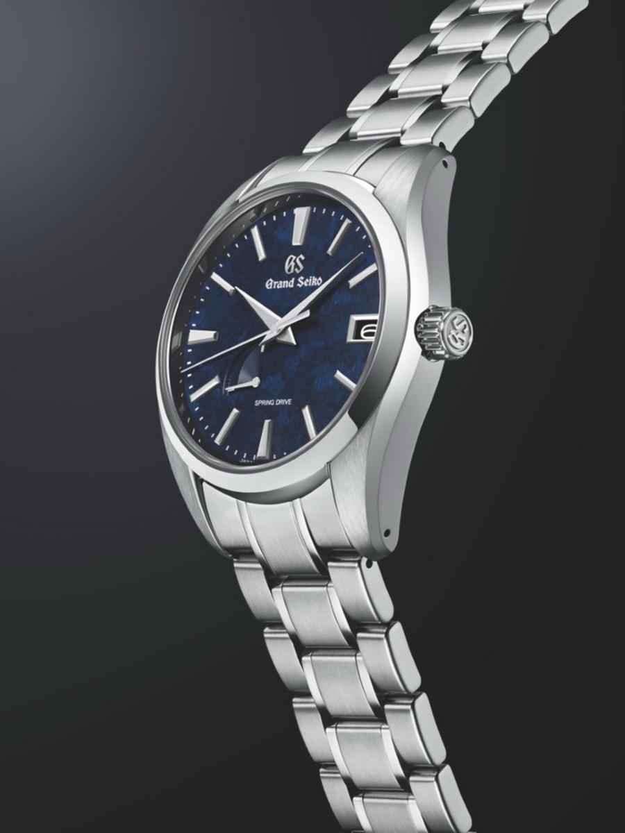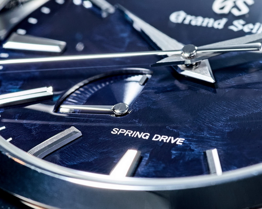 สำหรับ นาฬิการุ่น SBGA469 The First Grand Seiko Boutique Online Exclusive Edition ถูกออกแบบให้หน้าปัดมีสีน้ำเงิน katsuiro (คัตสึ-อิโระ) หนึ่งในเฉดสี Iindigo blue ซึ่งเป็นสีประจำของแบรนด์ pattern ลวดลายบนหน้าปัดได้รับแรงบันดาลใจมาจากธรรมชาติ ออกแบบให้มีลวดลายและ texture คล้ายกับโขดหินของเทือกเขา Hotake ที่อยู่ในภูมิภาคเดียวกับ Shinshu watch studio ซึ่งเป็นจุดกำเนิดของ Grand Seiko Spring drive ตัวเรือนเป็น stainless steel ขนาด 40 mm และถูกนำไปผ่านกระบวนการ heat treatment ที่อุณหภูมิ 800 องศา เพื่อเพิ่มความแข็งแรงและความทนทานต่อการเกิดรอย ส่วนตัว movement เป็น spring drive +/- 1 วินาทีต่อวัน ซึ่งถือได้ว่าเที่ยงตรงที่สุดในโลกสำหรับนาฬิกาที่ operate โดยกระปุกลาน และยังสะสมพลังงานได้ถึง 72 ชั่วโมงอีกด้วย