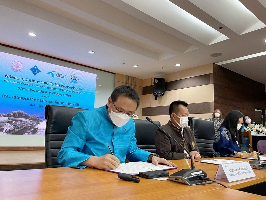 กระทรวงอุตสาหกรรม และ ดีแทค ร่ วมลงนามบันทึกความเข้าใจว่าด้วย ความร่วมมือในการยกระดับขีดความสามารถหมู่บ้านอุตสาหกรรมสร้างสรรค์ (Creative Industry Village: CIV) เพื่อฟื้นฟูและยกระดับเศรษฐกิ จชุมชน ดีแทคเน็ตทำกินร่วมพัฒนาศั กยภาพผู้ประกอบการในชุมชน นำเทคโนโลยีดิจิทัลมาประยุกต์ ใช้ในการจัดการธุรกิจสินค้าชุ มชนที่มากด้วยอัตลักษณ์ให้ 152 หมู่บ้านจาก 76 จังหวัด เพิ่มมูลค่าทางเศรษฐกิจให้อุ ตสาหกรรมท่องเที่ยวเชิงวั ฒนธรรมผ่านวิถีความเป็นไทย ต่อยอดด้วยนวัตกรรมสมัยใหม่เพื่ อความยั่งยืน