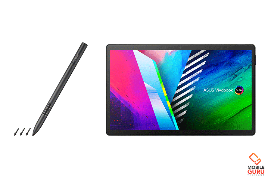 ปากกา ASUS Pen 2.0 สามารถเปลี่ยนหัวปากกาได้มากถึง 4 แบบ ซึ่งแต่ละแบบต่างให้ความรู้สึกคล้ายการใช้งานดินสอ 2H, H, HB และ B ให้การวาดภาพ แรเงา หรือการเขียนเป็นไปอย่างธรรมชาติและลื่นไหลมากที่สุด รองรับแรงกดได้กว่า 4096 ระดับ สามารถชาร์จผ่าน USB Type-C ได้อย่างสะดวก ชาร์จเต็ม 100% ในเวลาเพียง 30 นาที ใช้งานได้ถึง 140 ชั่วโมง และยังสามารถเปิดใช้งานฟีเจอร์ต่างๆ ได้ง่าย เมื่อเชื่อมต่อผ่านสัญญานบลูทูธและคลิกปลายปากกาครั้งเดียว ก็สามารถใช้งานโปรแกรมวาด เขียน หรือแคปภาพหน้าจอได้ทันที ใช้งานได้สะดวกร่วมกับโปรแกรม Adobe® Creative Cloud® ซึ่งลูกค้า Vivobook 13 Slate OLED สามารถใช้งานได้ฟรีเป็นระยะเวลาหนึ่งเดือน