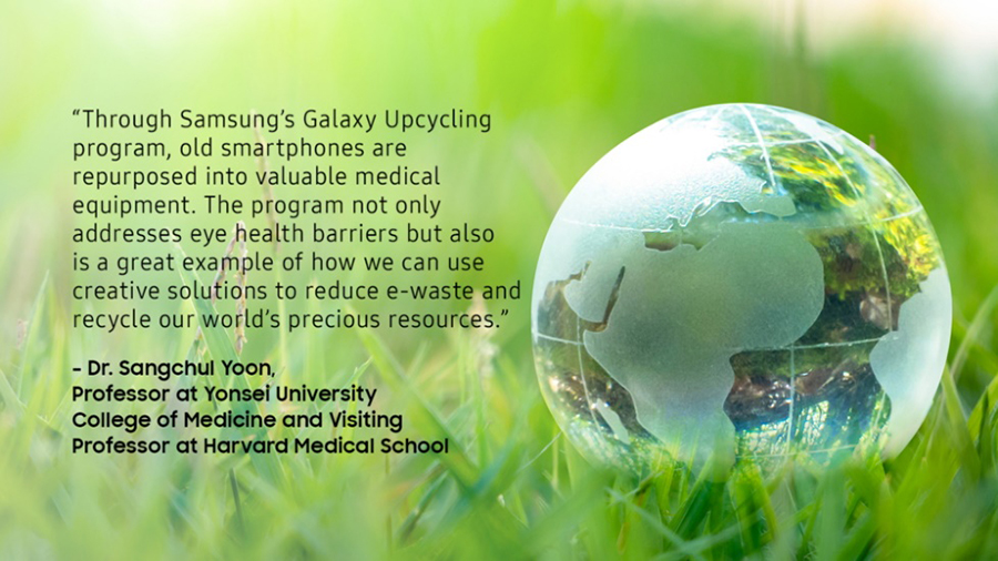 "โปรแกรม Galaxy Upcycling จากซัมซุง ได้เปลี่ยนสมาร์ทโฟนให้กลายเป็นอุปกรณ์ทางการแพทย์ที่มีค่า ซึ่งนอกจากแก้ปัญหาเรื่องการดูแลสุขภาพดวงตาแล้ว โปรแกรมนี้ยังเป็นตัวอย่างที่ดีของซัมซุงในการคิดค้นวิธีการที่สร้างสรรค์เพื่อลดขยะอิเลคโทรนิกส์และรีไซเคิลทรัพยากรอันมีค่าของโลก" ดร.เซ็งชอล ยูน ศาสตราจารย์ประจำวิทยาลัยแพทยศาสตร์ มหาวิทยาลัยยอนเซ และศาสตราจารย์รับเชิญที่โรงเรียนแพทย์ฮาร์วาร์ด กล่าว