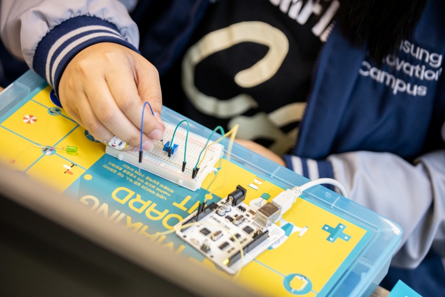 เมื่อ ‘โค้ดดิ้ง’ ถือเป็นกุญแจสำคัญที่จะสร้างความเปลี่ยนแปลงและโอกาสได้ไม่รู้จบ ซัมซุง จึงต้องการเตรียมความพร้อมให้กับเด็กยุคใหม่ในการรับมือกับความเปลี่ยงแปลงในโลกดิจิทัลผ่านการริเริ่มโครงการ Samsung Innovation Campus มาตั้งแต่ปี 2562 เพื่อจัดอบรมหลักสูตรการเขียนโค้ดและการเขียนโปรแกรม (Coding & Programming) ให้กับนักเรียนระดับชั้นมัธยมศึกษา โดยไม่คิดค่าใช้จ่าย ซึ่งการอบรมล่าสุดในช่วงเดือนมีนาคม - พฤษภาคม 2565 ซัมซุงได้เริ่มปูพื้นฐานโค้ดดิ้งให้เยาวชนไทยตั้งแต่การฝึกทักษะการคิดเชิงตรรกะ การเรียนรู้พื้นฐานภาษา C และ Python ซึ่งเป็นภาษาโปรแกรมมิ่งที่สำคัญและได้รับความนิยม รวมไปจนถึงการให้ความรู้ด้าน AI และการนำไปประยุกต์ใช้ควบคู่กับการเขียนภาษา Python และฝึกให้เยาวชนได้ทดลองสร้างสรรค์ผลงานจริงด้วยตนเอง เพื่อที่จะได้นำความรู้เหล่านี้ไปต่อยอดสร้างสรรค์เป็นนวัตกรรมใหม่เพื่อขับเคลื่อนโลกในอนาคต