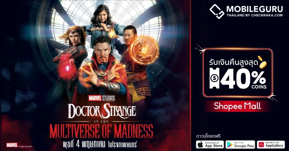 - เตรียมเปิดประตูสู่มัลติเวิร์สไปกับ #หมอแปลก จัดหนักแบบยืน 1 เอาใจสาวกมาร์เวลกับกิจกรรม Livestreaming สุดเอ็กซ์คลูซีฟ ถ่ายทอดสดงาน Gala ภาพยนตร์ “Marvel Studio’s Doctor Strange in The Multiverse of Madness จอมเวทย์มหากาฬ ในมัลติเวิร์สมหาภัย” รอบปฐมทัศน์ ในวันที่ 3 พฤษภาคม 2565 เวลา 18.30 น. เป็นต้นไป ผ่าน Shopee Live โดยเตรียมพบกับโค้ดรับเงินคืนสูงสุด 50% Shopee Coin และของสมนาคุณสุดพิเศษมากมาย ไม่ว่าจะเป็น เป้สะพายหลังเเบบหูรูด ลิขสิทธิ์จาก Marvel และตั๋วชมภาพยนตร์จาก Major Cineplex